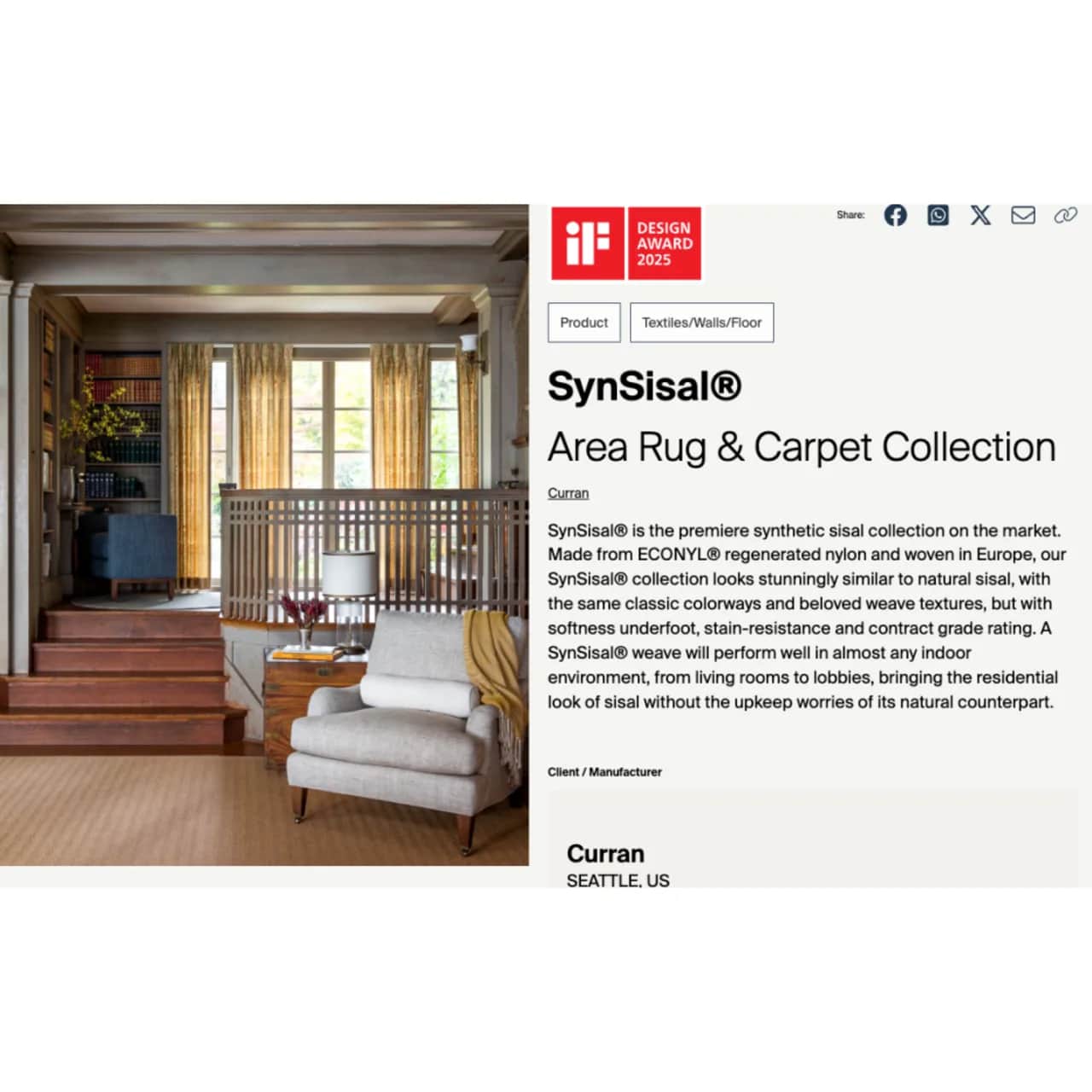 "iF Design Award 2025 Winner - 1.25: Textiles/Walls/Floor"